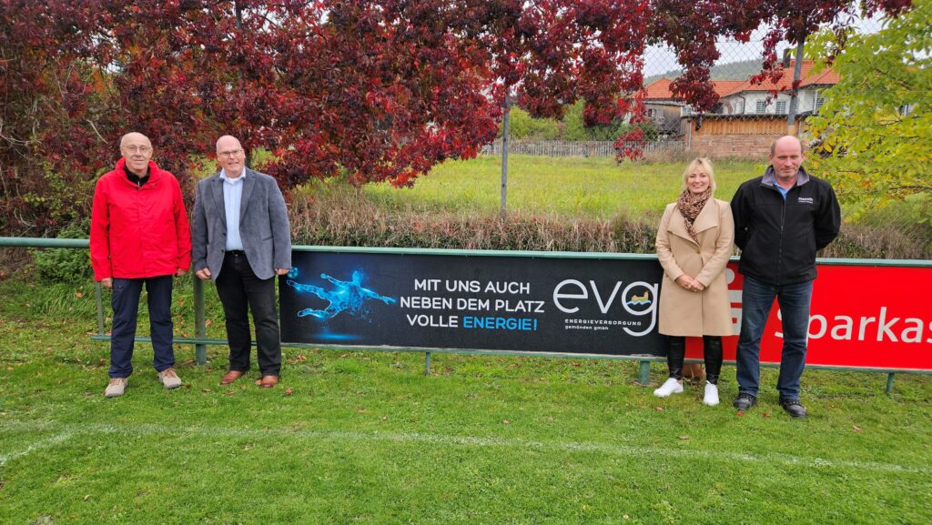 Die Energieversorgung Gemünden GmbH (EVG) unterstützt den TSV Langenprozelten mit einer neuen Bandenwerbung am Sportplatz.