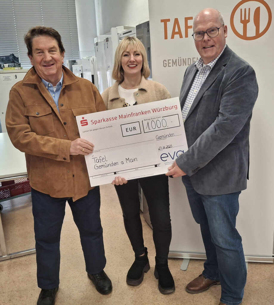 GEMÜNDEN: Die Energieversorgung Gemünden GmbH unterstützt auch in diesem Jahr wieder die Arbeit der Gemündener Tafel mit einer Spende von 2000 Euro. Der kaufmännische Geschäftsführer der EVG, Roland Brönner hat sich vor Ort ein Bild über die Aufgaben und das Wirken der Verantwortlichen und Mitarbeiter machen können. Peter Auktor, der Gründer der Gemündener Tafel und Armin Stichel, der Leiter der Tafel erklären, dass die Bedeutung und die Aufgabe der Tafel wichtiger denn je geworden ist und viele Bürgerinnen und Bürger inzwischen auf diese Form der Unterstützung angewiesen seien. Sie freuen sich über diese Spende und versichern, dass diese Hilfe ohne Umwege und große Bürokratie eingesetzt werde, um Not zu lindern.